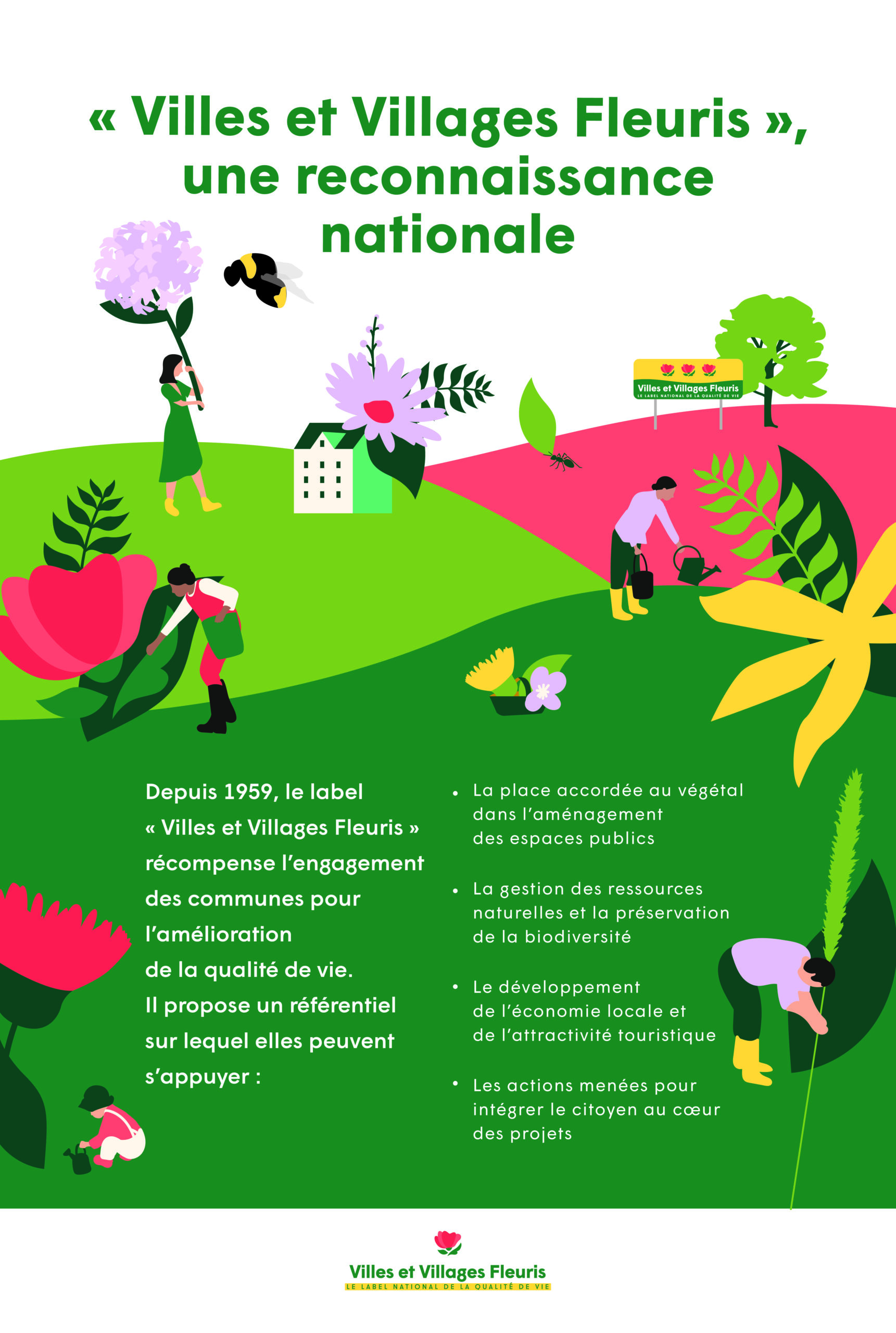 Le Label National de la Qualité de Vie « Villes et Villages Fleuris » est une distinction décernée par le Conseil National des Villes et Villages Fleuris. Il récompense les communes qui s’investissent dans :